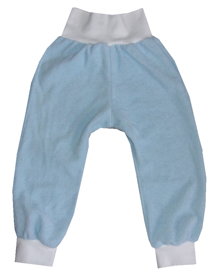 úplet 100% bavlna jednolícní froté, zvenku smyčka, uvnitř hladký úplet. Kolem nožiček a v pase pružný lem. Tepláčky jsou velmi pohodlné i pro nejmenší děti.