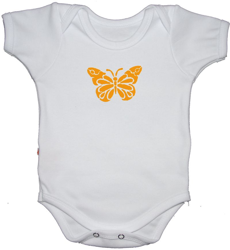 Kojenecké body bílé oranžový motýl
