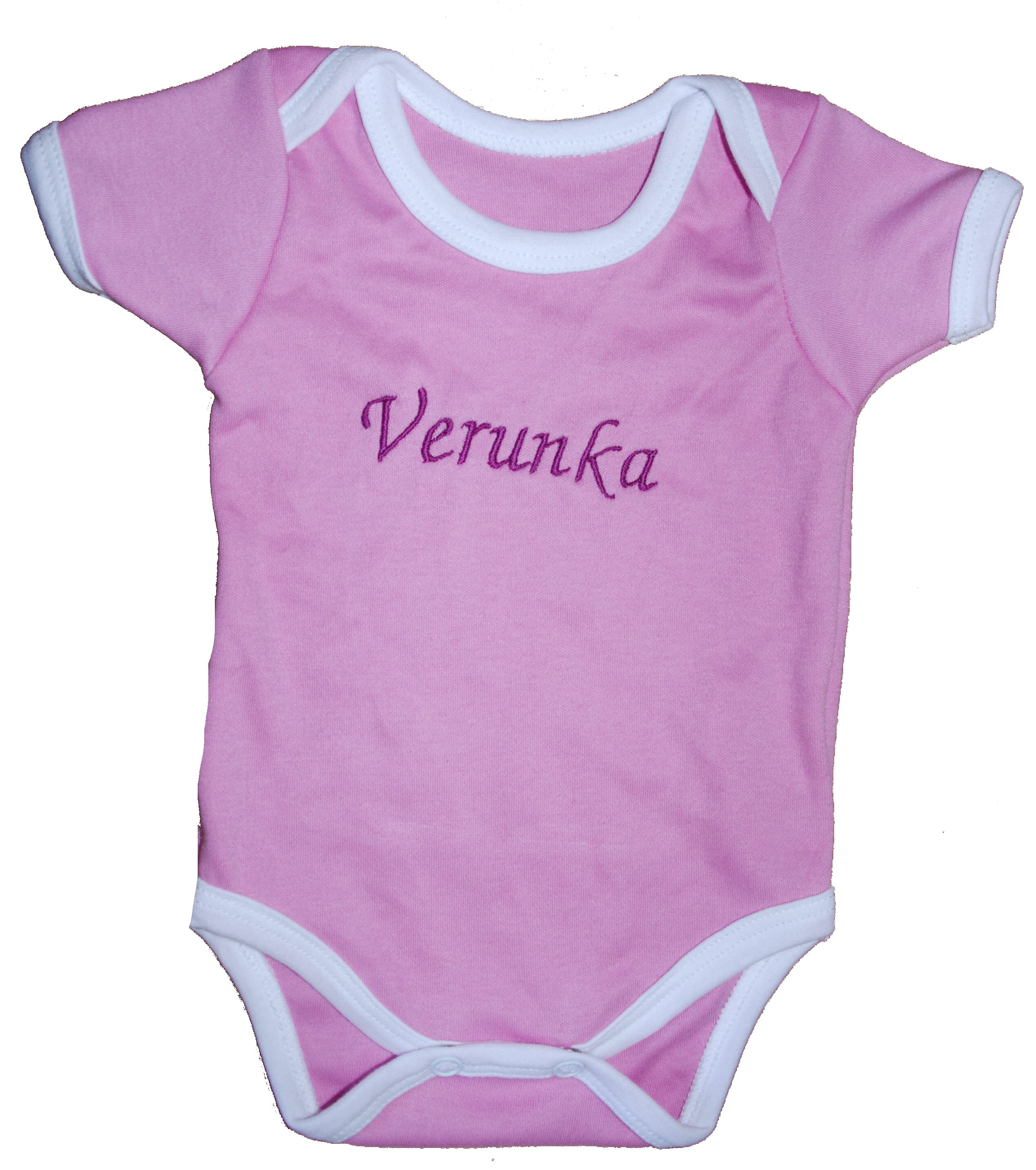 Kojenecké body růžové se jménem a bílým lemem