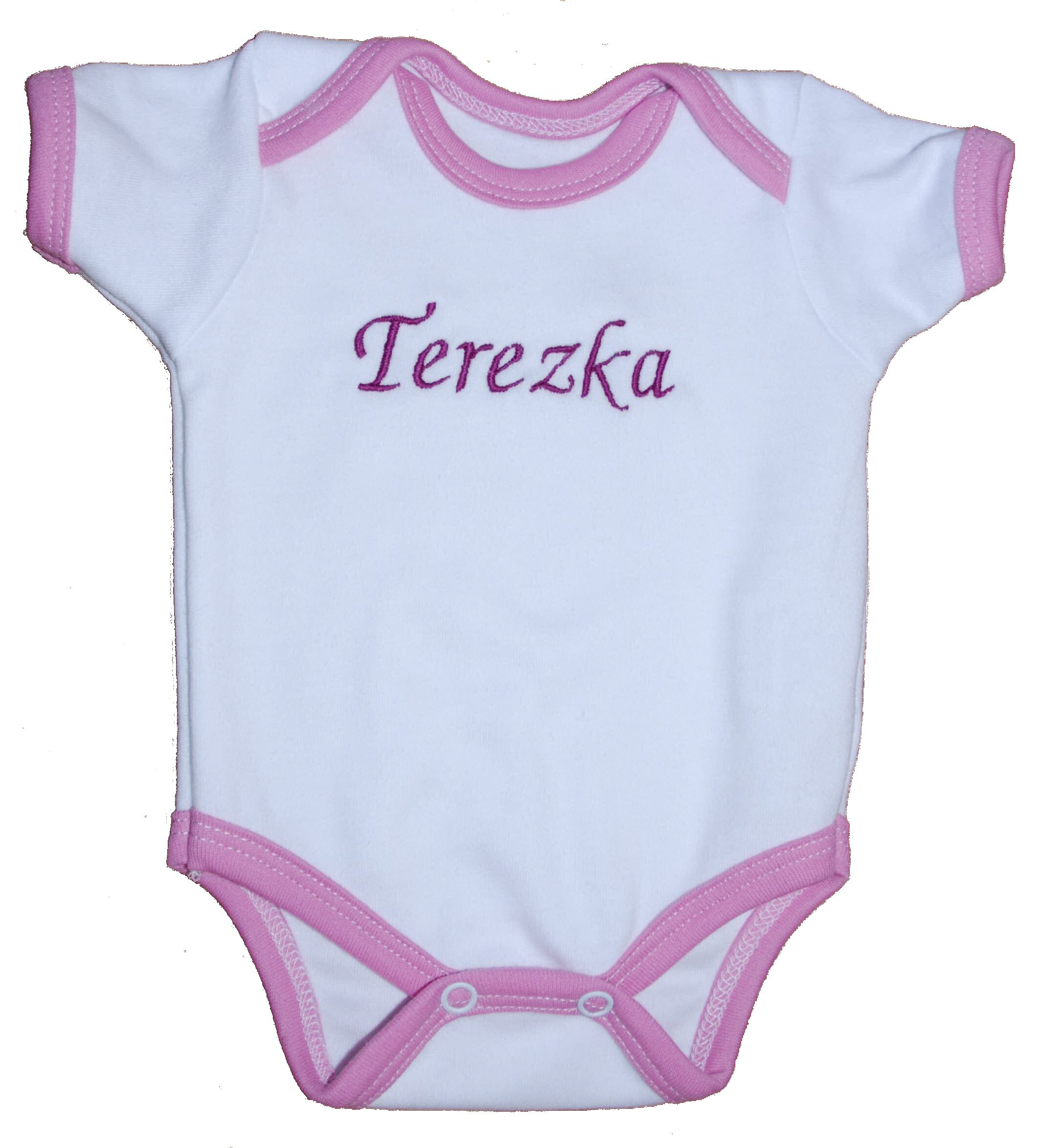 - Kojenecké body s růžovým lemem se jménem