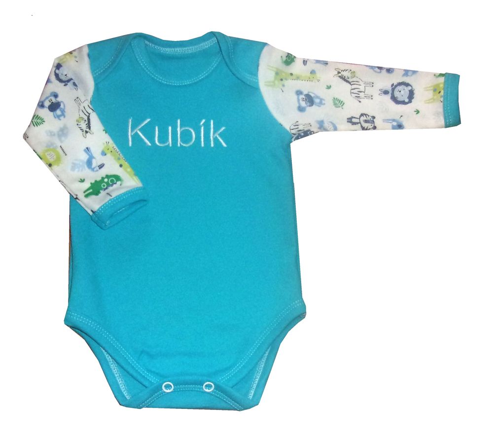 Potisk zvířátek v barvách pro kluky, výšivka jména
