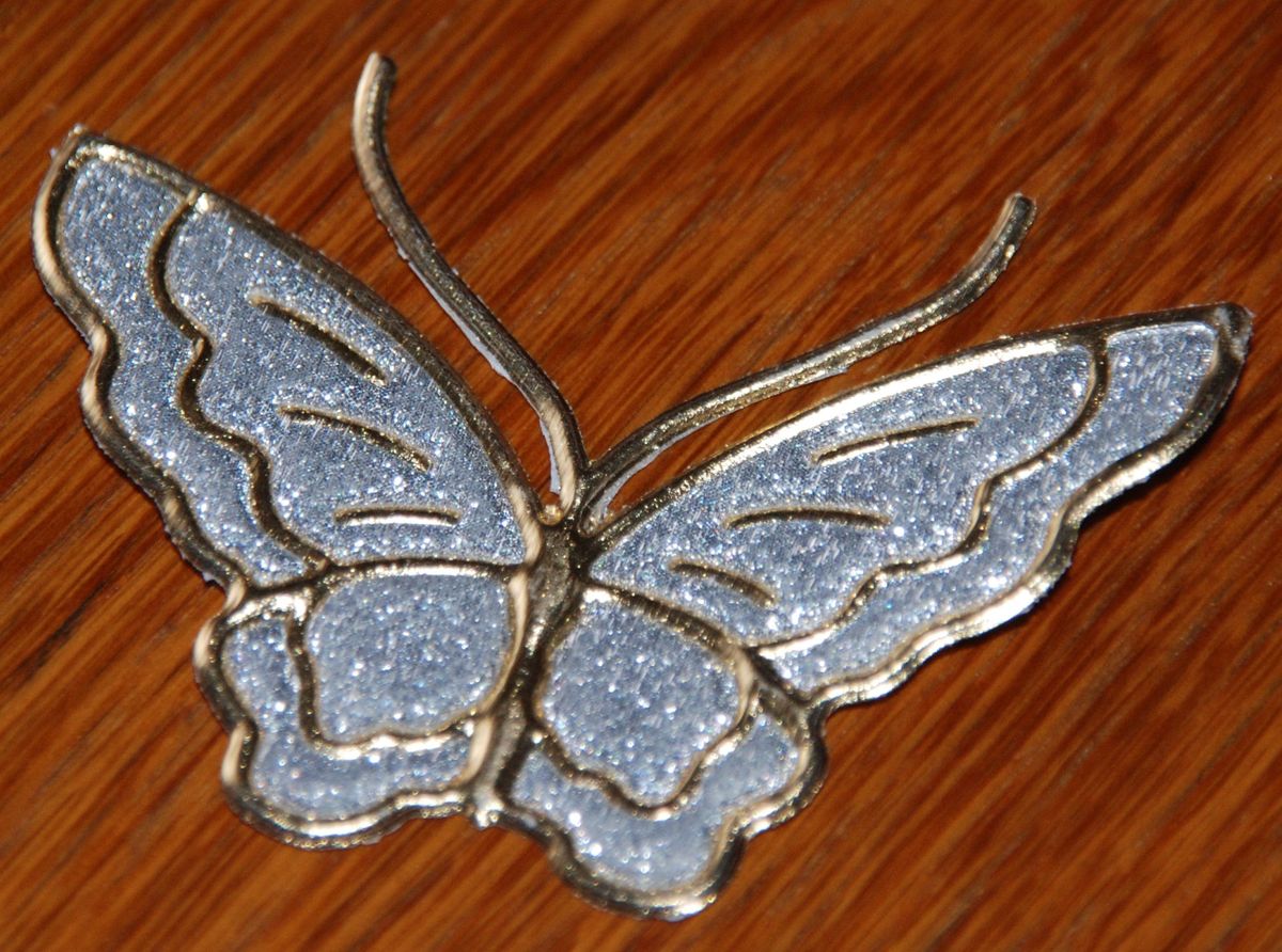 stříbrný motýlek se zlatými okraji