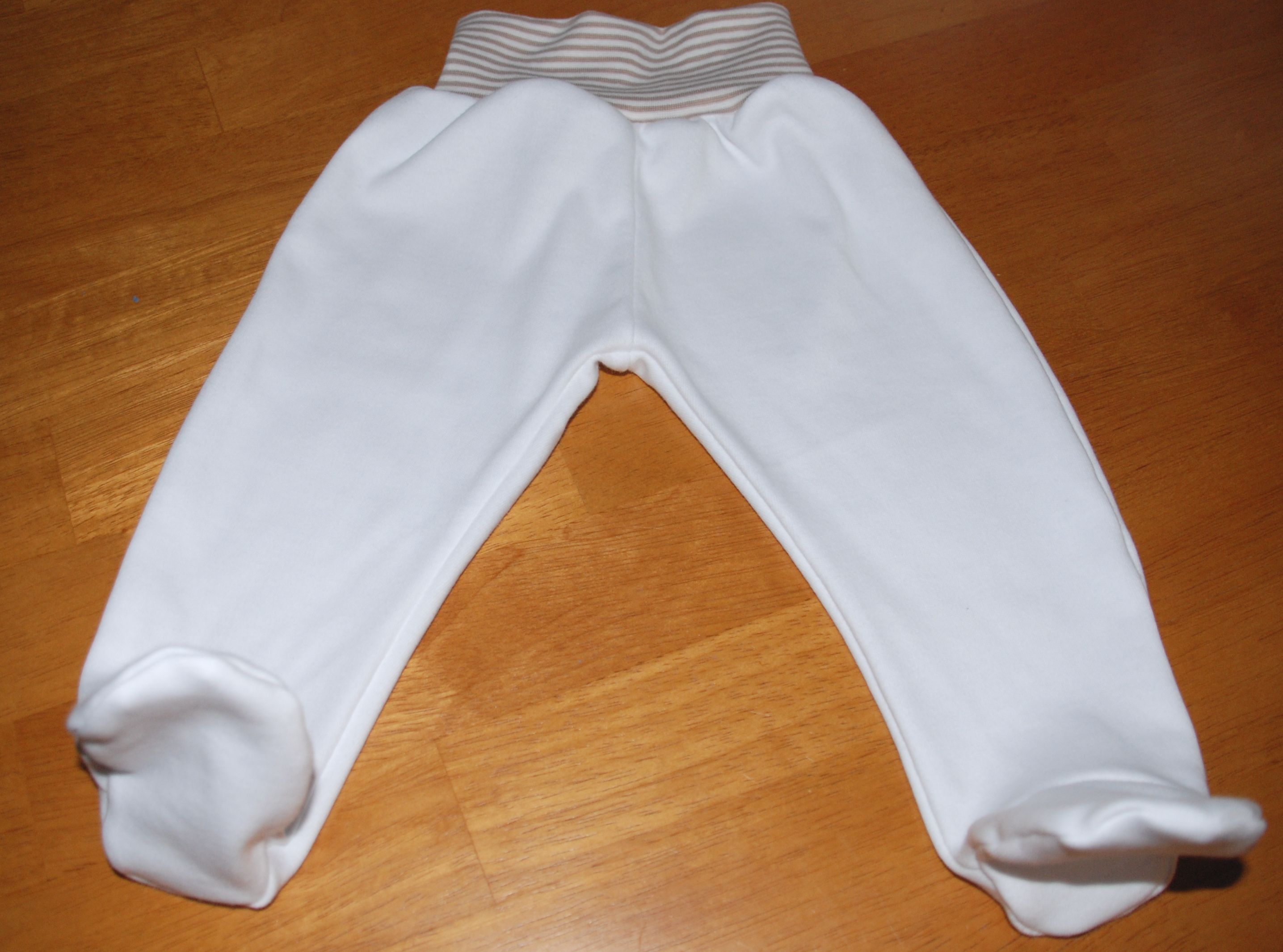 bílé bavlněné polodupačky, pružný lem v pase s hnědými proužky
