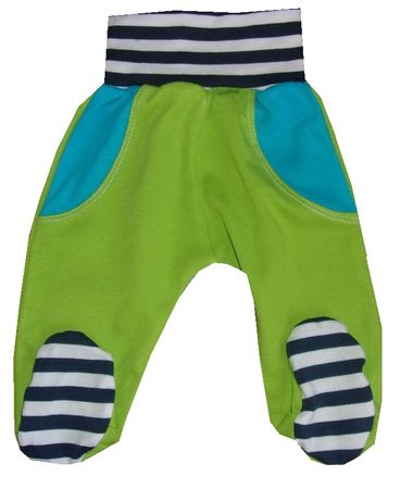 Kojenecké - dětské polodupačky zelené s proužky