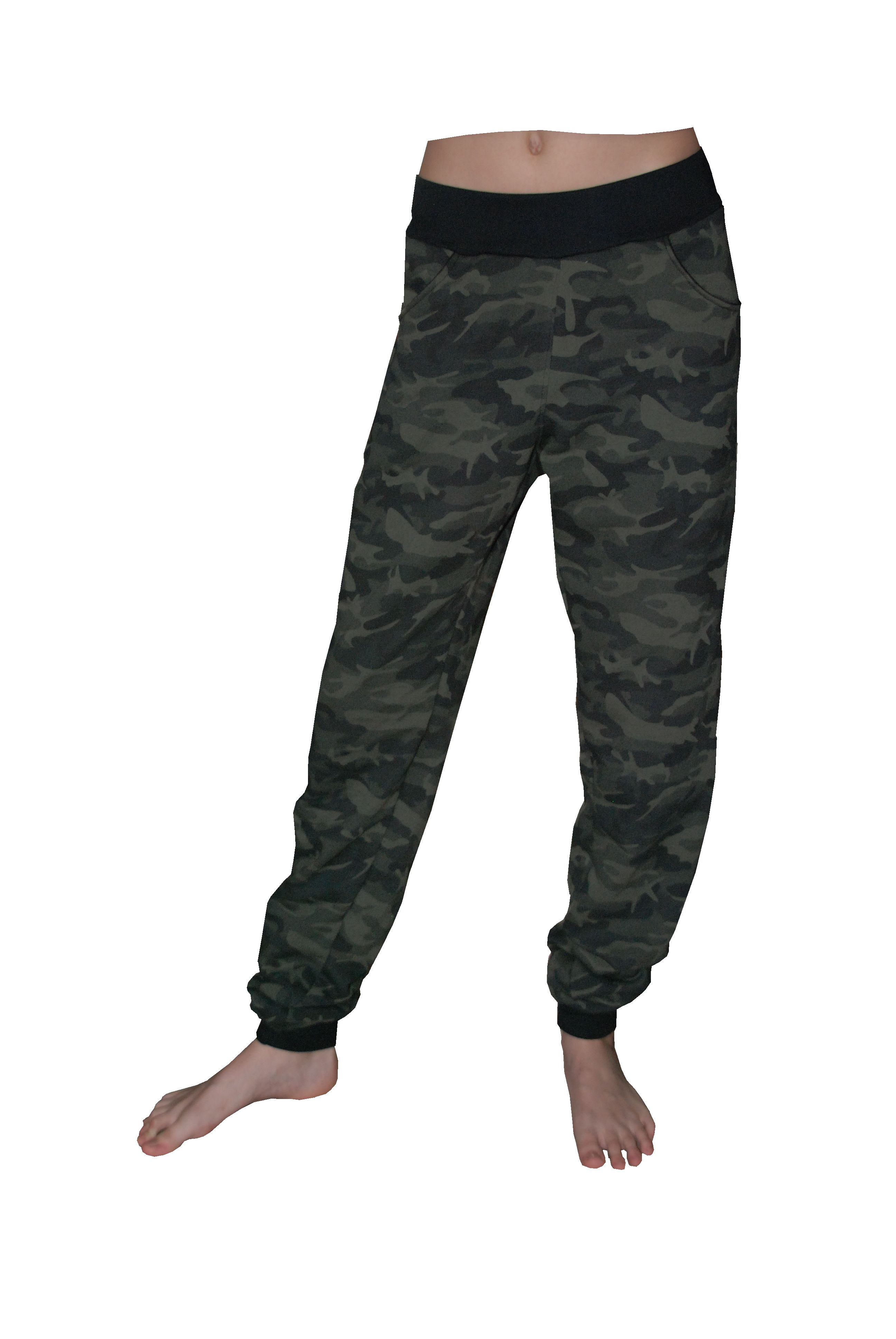 - Rostoucí tepláky s kapsami - maskáč