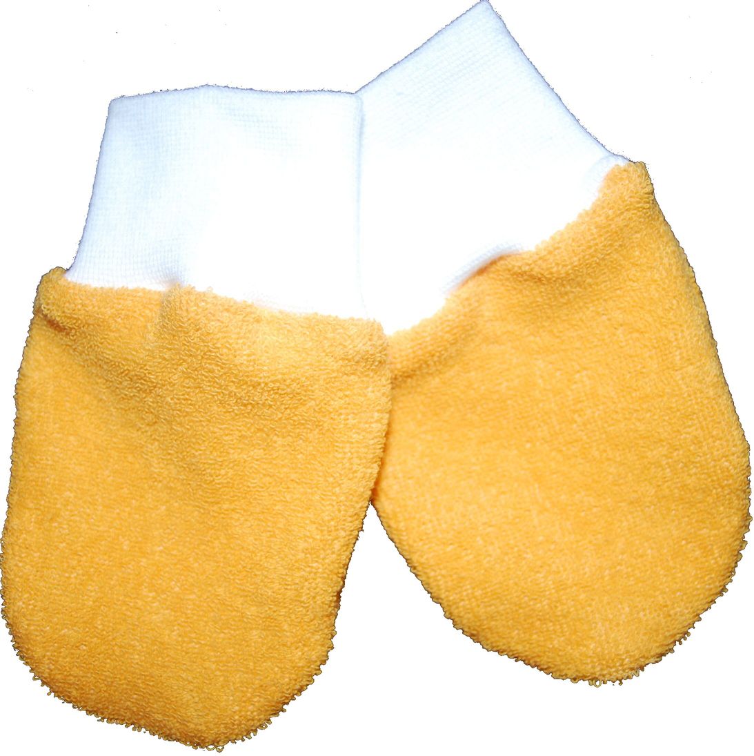 jednolícní bavlněný froté úplet, z vnitřní strany hladký úplet, z vnější strany smyčka, kolem ručičky pružný lem. Rukavičky u miminek zabraňují poškrábání, doporučujeme i pro letní miminka.