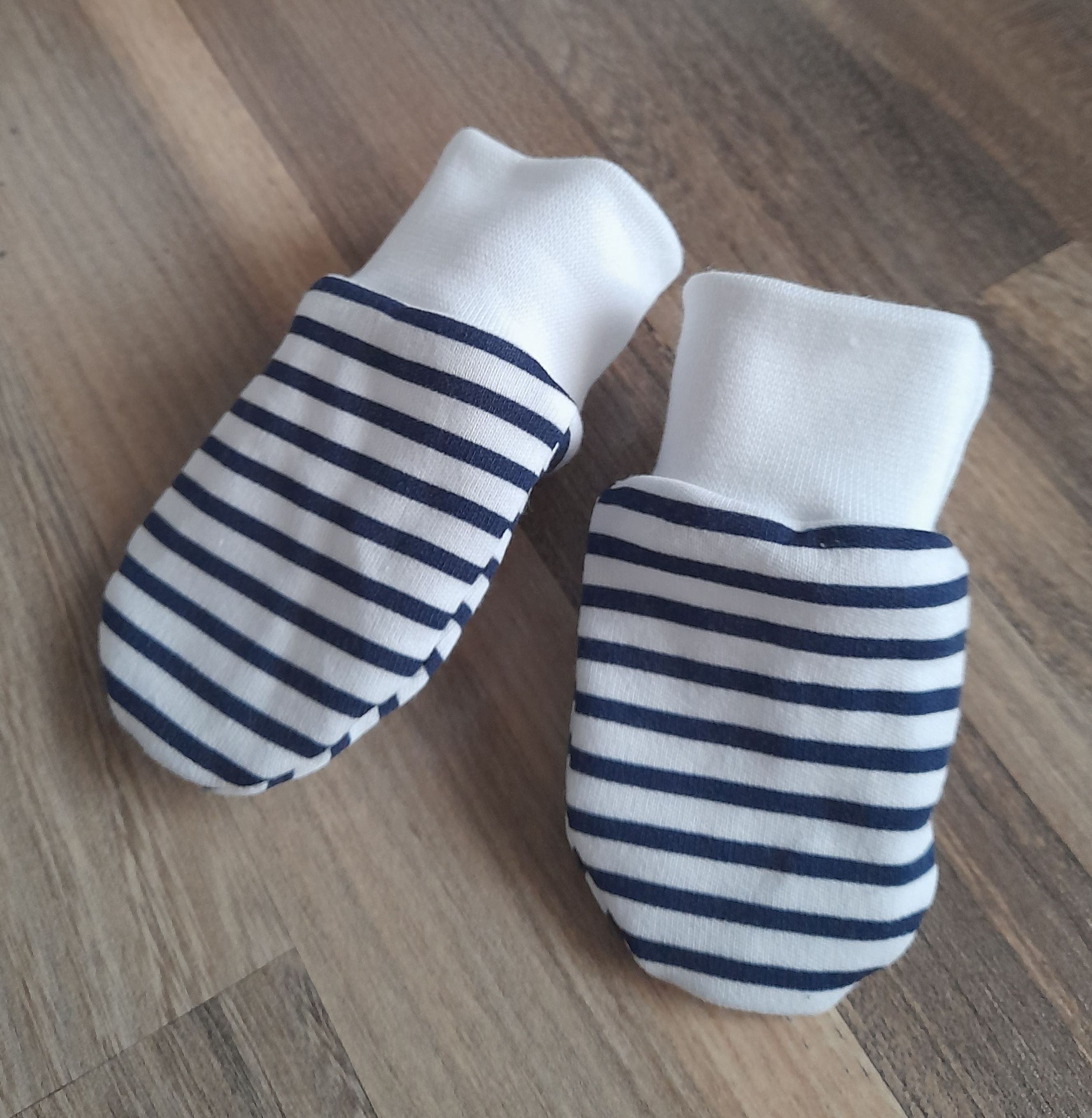 bavlněný úplet, kolem ručičky pružný lem. Rukavičky u miminek zabraňují poškrábání, doporučujeme i pro letní miminka.