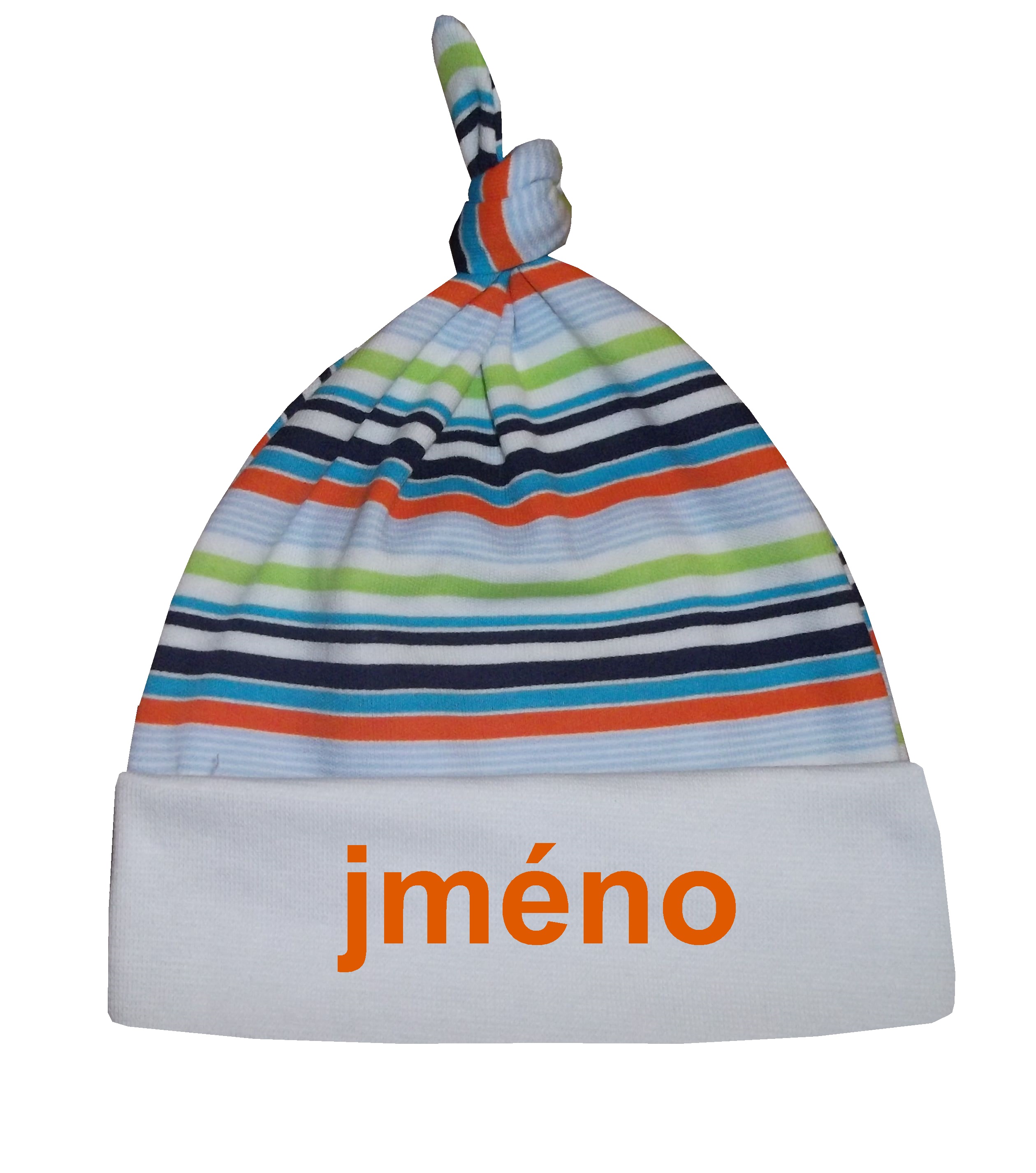 bavlněná čepička s výšivkou jména na přání jméno pište prosím do poznámky i barvu výšivky můžete změnit napsáním do poznámky, máme téměř jakoukoliv   velikost = obvod kolem hlavičky v cm celý popis
