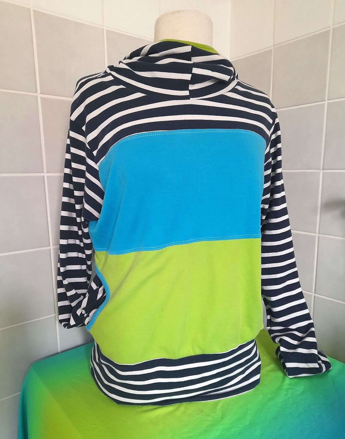 pruhovaná mikina přes hlavu