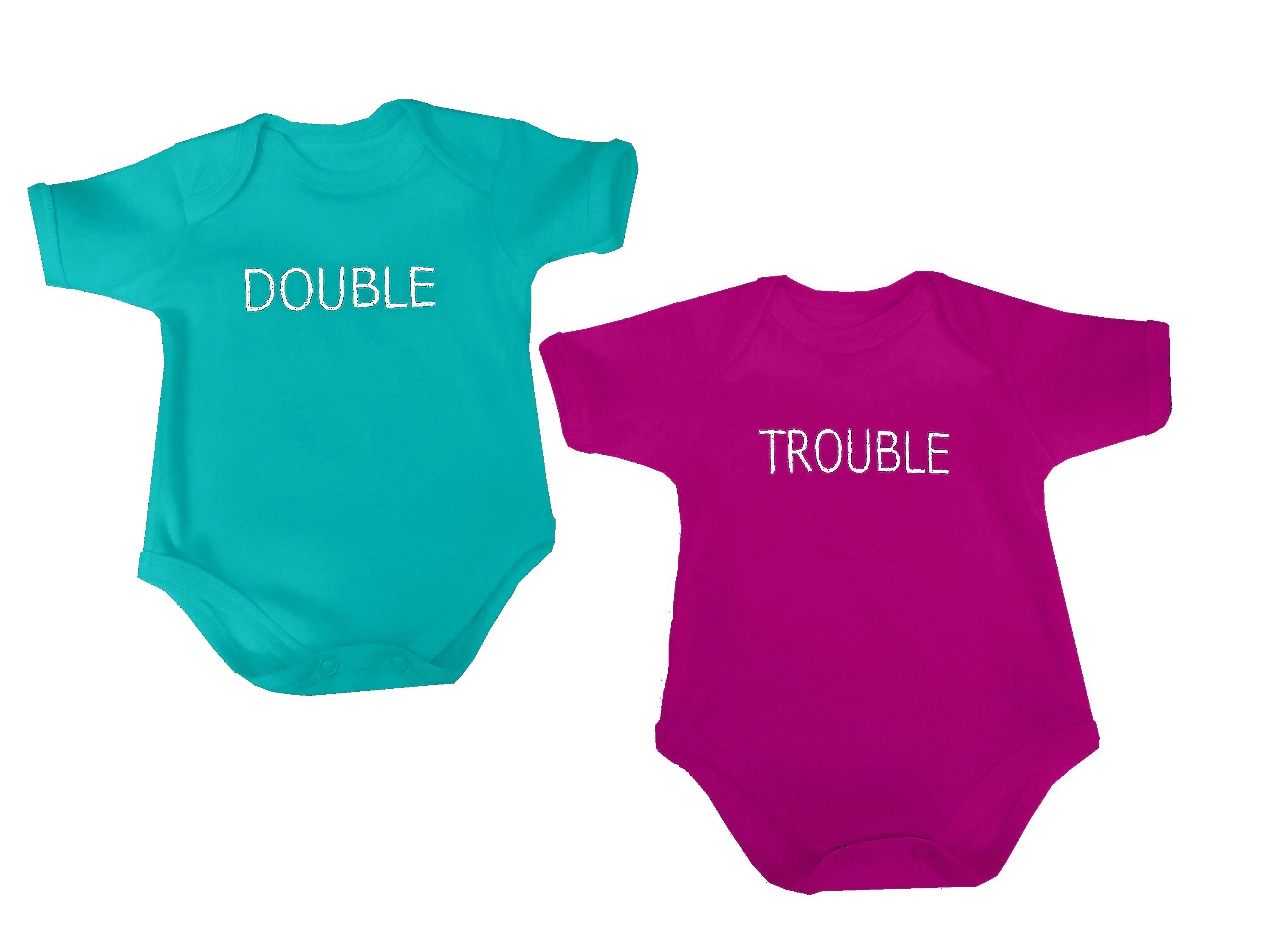 kojenecké body s nápisem pro dvojčátka, výšivka