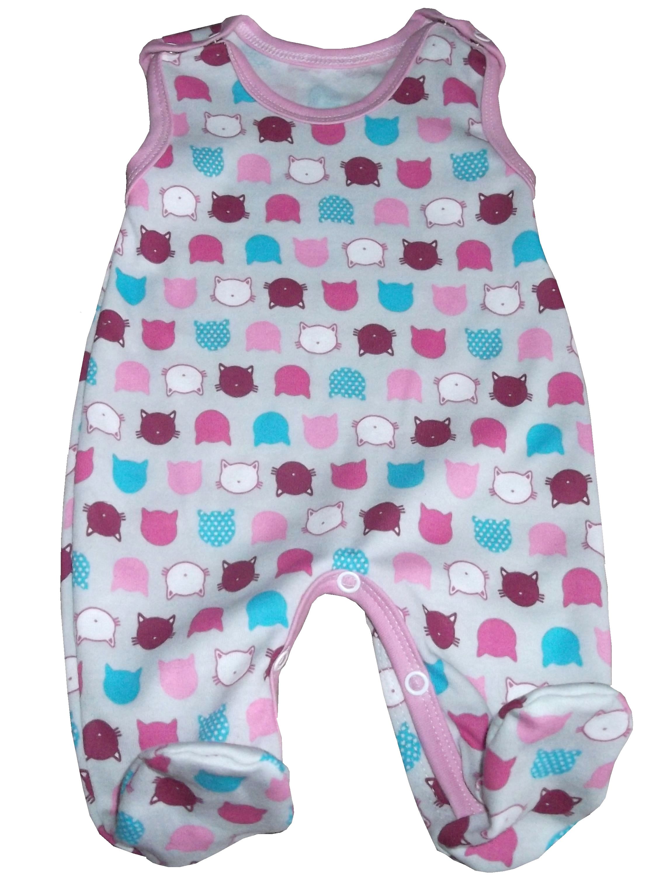 kočičkové dupačky pro holčičky - z bavlněného úpletu s potiskem kočičích hlaviček