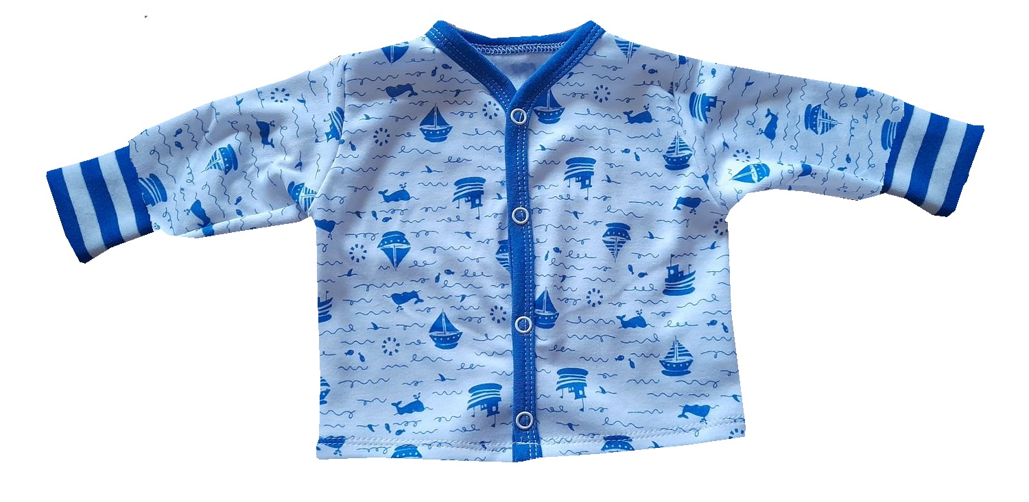 bavlněný obouícní úplet s potiskem, zapínání na druky, náplety 95% bavlna, 5% elastan